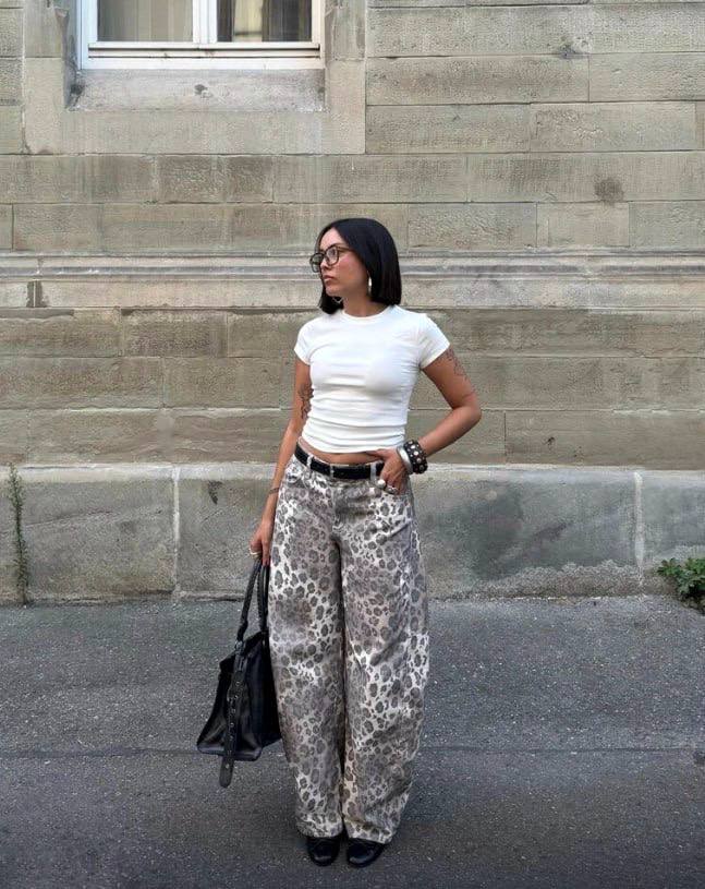 Jean à la coupe large et fluide, rehaussé d’un imprimé léopard élégant, pensé pour un style affirmé et facile à porter au quotidien.
