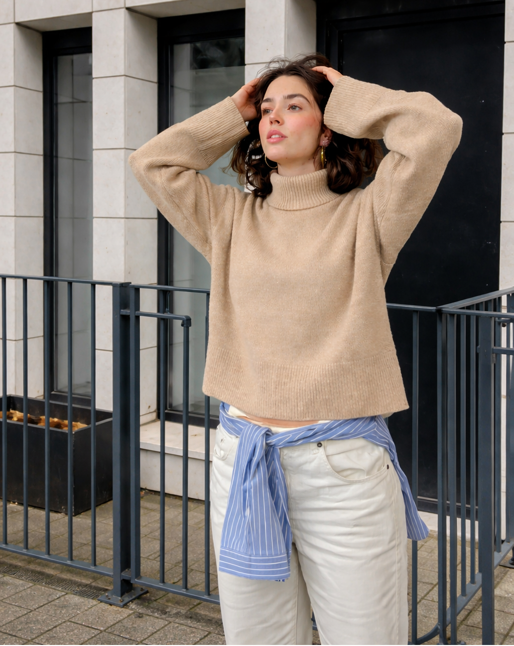 Pull en maille unie à col montant et manches longues, pensé pour offrir chaleur, confort et élégance au quotidien.