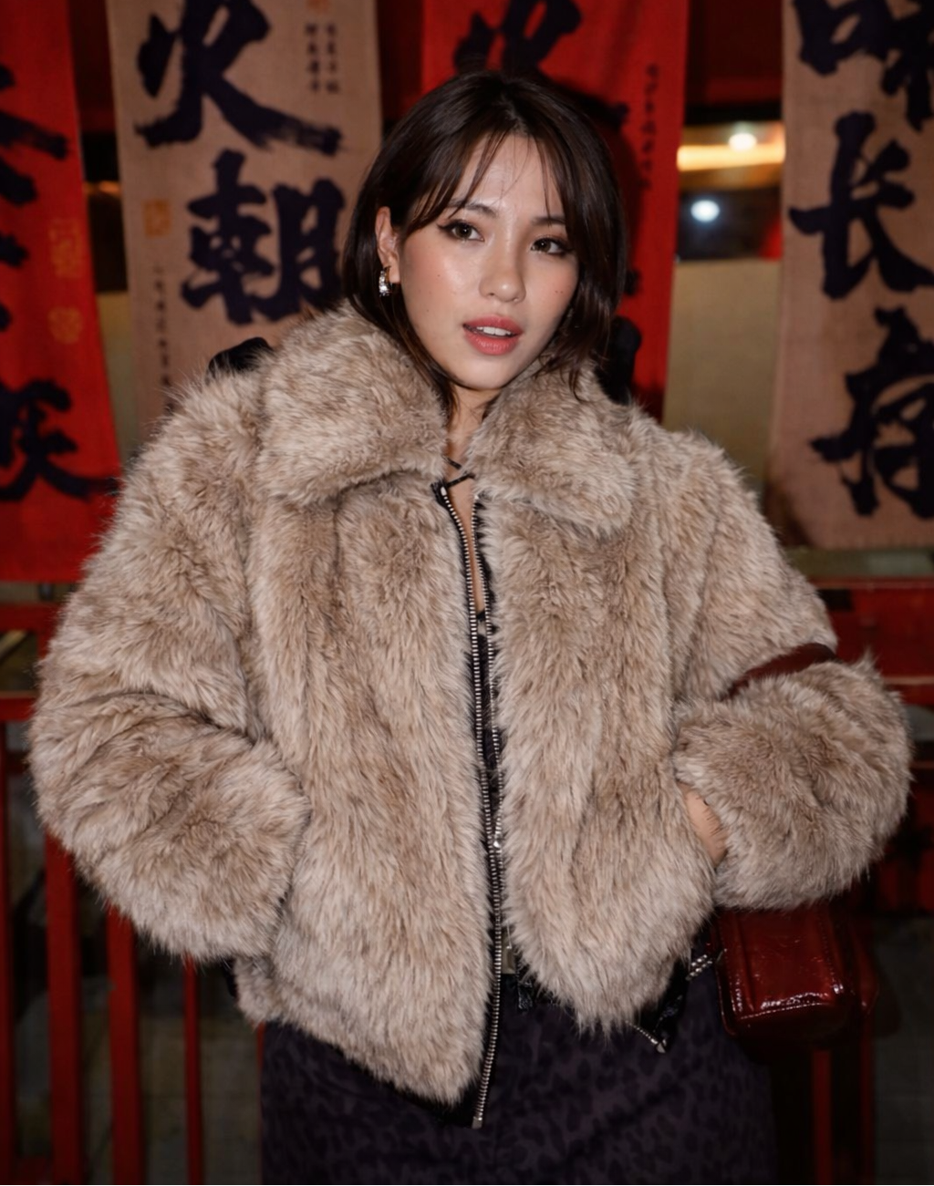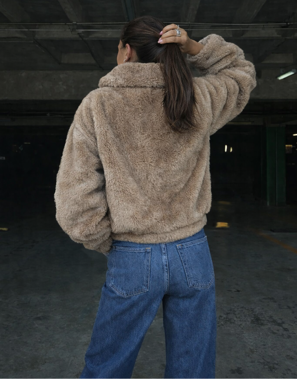 Veste courte en fausse fourrure au volume doux et enveloppant, pensée pour un style urbain affirmé et confortable au quotidien.