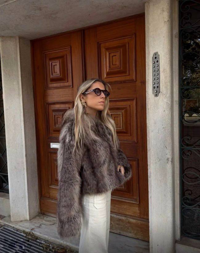 Veste à l’allure luxueuse, en fausse fourrure douce et volumineuse, pensée pour un style chic affirmé et facile à porter au quotidien.